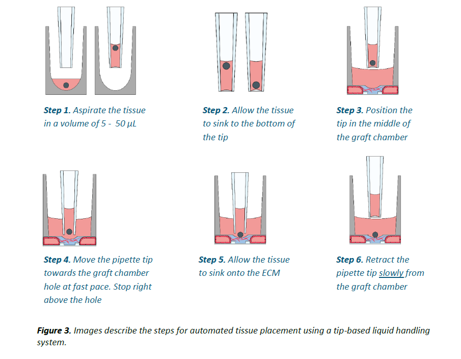 4. When the pipette tip enters the graft chamber well, leave it there for 2-3 seconds. Allow the tissue to flow out of the wide board tip and position on the graft chamber hole