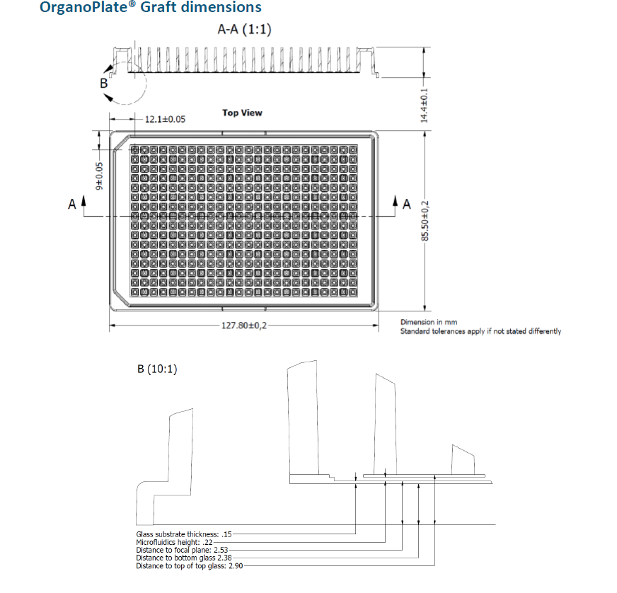 2. Set the OrganoPlate® Graft dimensions into your robotic system (see below for OrganoPlate® Graft dimensions)