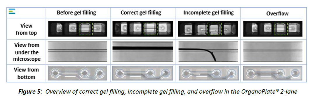 f. For examples of correct gel filling in the OrganoPlate® 2-lane, see figure 5 below.